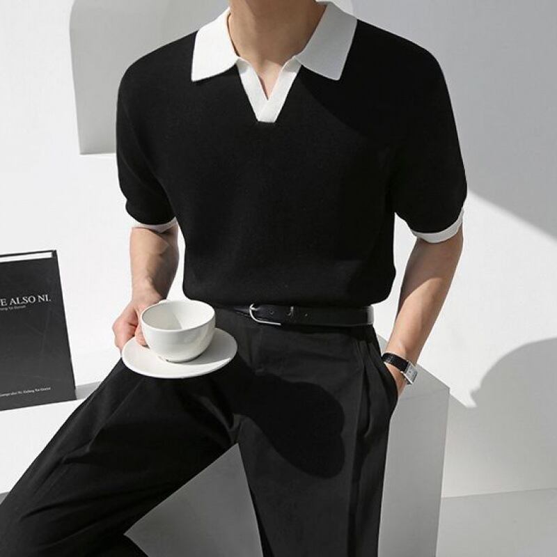 E17897 快適な着心地 無地 半袖 2024春夏新作 カジュアル ニット スポーツ メンズ ワイシャツ